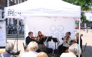 Today (Fri 27th May) in Epsom Square, a String Quartet performed in honour of the NHS workers of Epsom & Ewell who have worked so hard these last few years. As the pandemic froze our country (and the world) to a halt, the brave, dedicated health workers up and down the country worked around the clock to help bind up the wounds that COVID-19 opened.