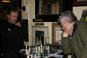 What makes Epsom Chess Club special? Why do people keep coming back? “It’s for the love of the game”, Club Secretary David Flewellen tells me while they’re setting up their session, “It’s satisfying to come here every week and end up playing a better game”. What makes the club special is that it’s a place where you can relax with a drink and let chess consume you for a few hours, an escape from the problems of everyday life. When you’re in there, all that matters is the board, the pieces and the person sitting opposite you, with their hand placed thoughtfully under their chin, plotting your metaphorical demise. Ego’s are muted, friendly advice is given over drinks post-game and players observe each other’s games stoically, before respectfully congratulating/commiserating the winner/loser. There’s no gloating, no under or over estimation, just pure chess. In a place meant for drinking, revelry and out-of-tune sing-a-longs; a company of like minded men and women meet week-in week-out on a monochrome 8×8 square battlefield, if that isn’t enough to show that Epsom Chess Club is special, then I don’t know what is.