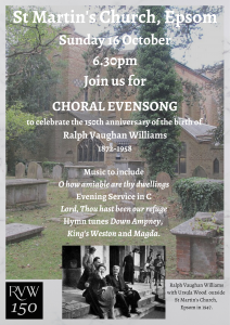 Choral Evensong marking the 150th anniversary of the birth of Ralph Vaughan Williams