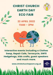 A chance to catch up with local initiatives concerning the environment. Clothes swap, Surrey Climate Change, SW15 Hedgehogs, Sustainable Epsom & Ewell, Terracycle and Epsom Repair Cafe are all going to attend as well as Bushcraft activities for children and displays to get you thinking and talking about your local area. Christ Church has received a Silver A Rocha Eco Church award and is looking to build on this with community engagement. Refreshments available.