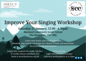 If you like singing, come and enjoy an informal afternoon learning new music and improving your singing through music on a theme of hills and mountains (The Hills are Alive with the Sound of Music and Ain’t No Mountain High Enough, anyone?). No experience of singing in a choir needed, but you will find it helpful to read music. Informal performance for family and friends at 4.15pm.