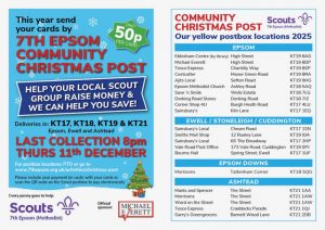 A service delivering Christmas Cards in KT17, KT18, KT19 and KT21. Save money and help us raise funds by delivering your Christmas Cards for just 50p per card.