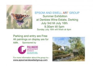 The Epsom and Ewell Art Group is holding a Summer exhibition of painting and drawings at Denbies Wine Estate Art Gallery from 3rd -16th July. Everyone is welcome, so please come to browse the many different styles and mediums on display. Artworks are also available to purchase.