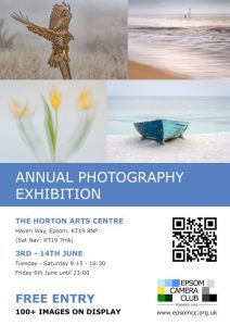 Epsom Camera Club will be holding their annual exhibition at Horton Arts Centre from 3 to 14 June. Feel free to drop in and see hundreds of amazing photos from lots of local photographers. If you would like more information about the club or exhibition please visit: www.epsomcc.org.uk