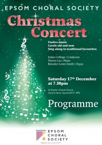 Epsom Choral Society’s annual Christmas concert with carols familiar and new, and lots of Christmas sparkle.