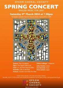 With English Music for Lent, Epsom Choral Society presents spiritual works from 20th century composers, reflecting on the crucifixion story and its themes of love and sacrifice.