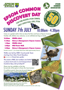 To celebrate the 50th anniversary of the Epsom Common Association, there will be a series of guided walks on Epsom Common. People are warmly invited to join a walk – to find out about the fauna and flora of Epsom Common.