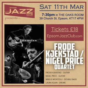 Buy your tickets in advance here: https://www.ticketsource.co.uk/epsom-music/epsom-jazz-club-sat-11th-mar-7-30pm-frode-kjekstad-nigel-price-quartet/e-vagppr
