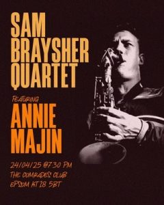 Annie Majin is a fresh new talent active on the jazz club circuit who recently made her debut on the West End stage. Together with celebrated alto saxophonist Sam Braysher, Annie will be presenting classic and lesser known items from the American songbook and jazz canon, including compositions by the likes of George Gershwin, Rodgers & Hammerstein and Harold Arlen, as well as songs from Sam’s latest album That’s Him: The Music of Kurt Weill, which got airplay on Radio 3 and Jazz FM. Annie, Sam and the band recently presented their Kurt Weill project in London’s Ladbroke Hall.