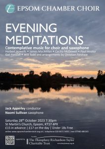Presenting an intriguing combination of pieces for choir and saxophone, the centrepiece of the first half is a series of ‘nocturnes’ arranged by Christian Forshaw. Their guest saxophonist Naomi Sullivan will also join the choir in works by James MacMillan and Will Todd. In addition, the programme includes music from composers Paul Mealor, Gail Randall and Cecilia McDowall with the second part of the concert devoted to the contemplative and much-loved Requiem by Herbert Howells.