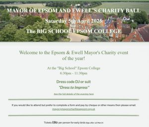 Mayor’s Charity Ball at Epsom College in aid of his 3 charities – all proceeds go to the charities.