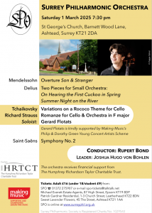 Join us on March 1st for a varied & melodic orchestral concert at St George’s Church, Ashtead.