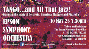 Get your feet tapping with the rhythms of the Epsom Symphony Orchestra’s Tango…and all that jazz! Featuring three compositions from Gershwin, including his iconic Rapsody in Blue which combines elements of classical music with jazz-influenced effects. Our soloist is international prize winning, London born pianist J P Ekins.
