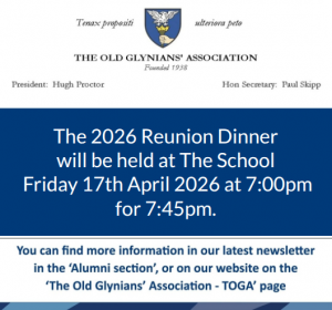The 2026 Reunion Dinner will take place at The School on Friday 17 April at 7.00pm for 7.45pm.